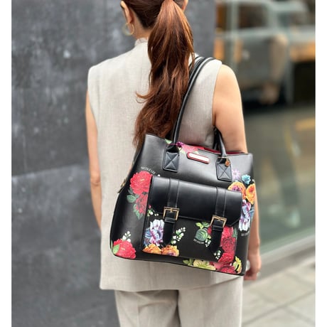 [Limited Quantity] ♦︎Product Description: This elegant tote bag features a botanical design, combining functionality and sophistication for a sophisticated, sophisticated look. Crafted from durable, eco-friendly vegan leather, it seamlessly transitions from everyday use to weekend getaways. The three-compartment interior allows for easy organization and ample storage. The center zippered compartment is ideal for storing valuables. The longer handles allow for smooth access to your belongings. A4-sized documents and laptops can be stored vertically, with approximately 2cm of the contents visible from the bag. The front pocket is perfect for storing a smartphone or notebook. ♦︎Features: Zipper closure, interior pocket. ♦︎Material: Vegan leather, 100% polyester lining. ♦︎Weight: 1,000g. ♦︎Dimensions: L31 x H29 x D15. *Dimensions are approximate.